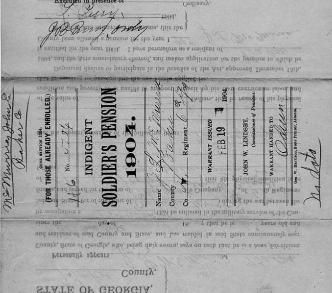 Indigent soldier’s pension 1904