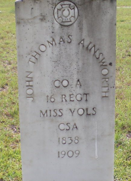 A small error here: Private John Thomas Ainsworth was a Private in Company H (not A) of the 16th Mississippi Infantry; wounded at Sharpsburg and Gettysburg.