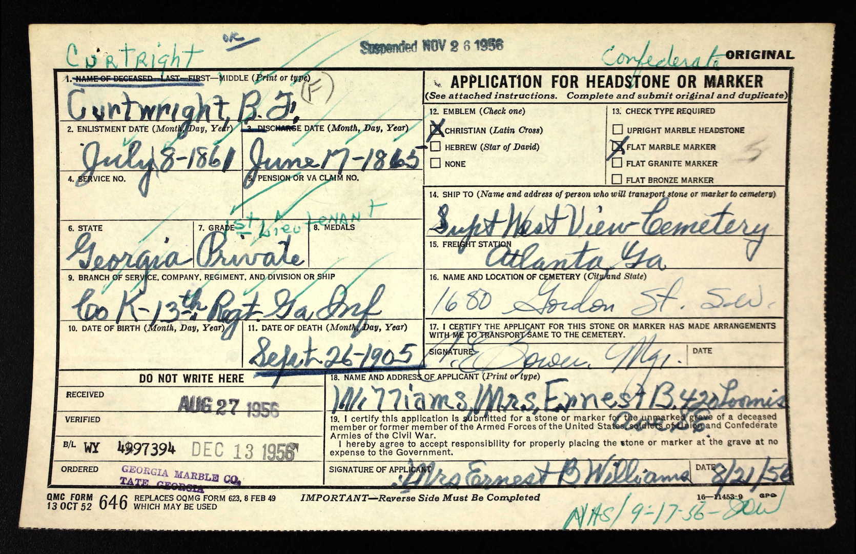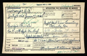 An Army clerk found a couple of errors (green ink) and noted corrections. Curtright’s rank made it onto the stone, but his last name didn’t.
