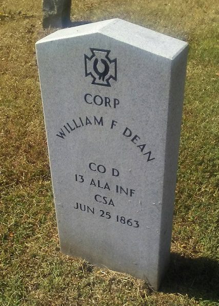 Pingback: behind AotW » Blog Archive » 3 stones for William F Dean, 13th Alabama Infantry