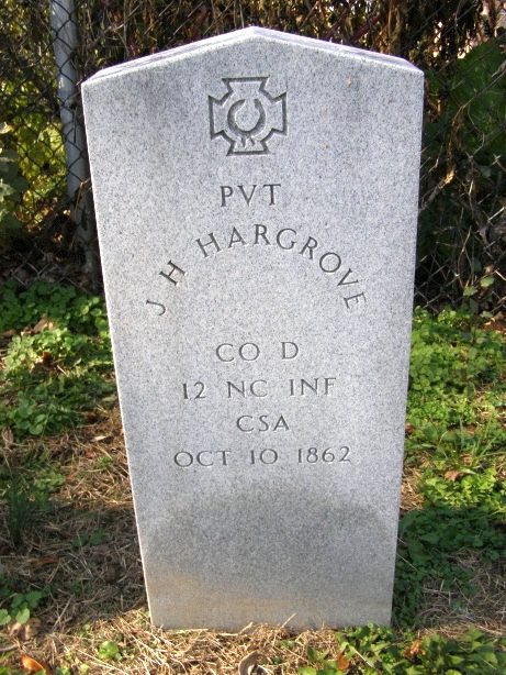 Back to Mt. Olivet in Frederick, MD again – this stone is for Pvt. Israel H. Hargrove. He’s seen in almost all of his military and hospital records as “J.H. Hargrove” – so the name on his stone is understandable; it’s pretty easy to confuse a handwritten 19th Century capital “I” with “J”. Still a shame no one looked deeper before having his stone engraved.