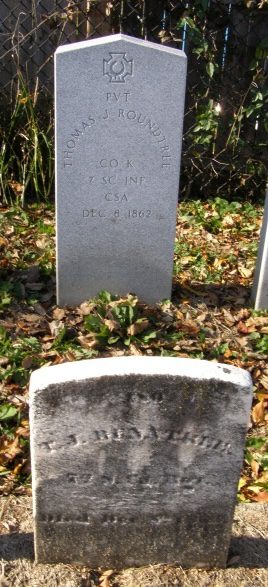 It could have been worse, I guess – he was originally buried under a wooden headboard that had him in Company B of the 3rd South Carolina Infantry. That carried forward onto his first stone at Mt. Olivet. This newer marker got the regiment right.