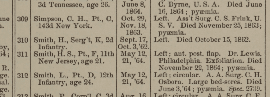 But there are pretty good enlistment and medical records for Sergeant Henry Smith of the 2nd US who was wounded at Antietam. By way of example, here the entry for him in the Medical and Surgical History of the War of the Rebellion (MSHWR, 1870).