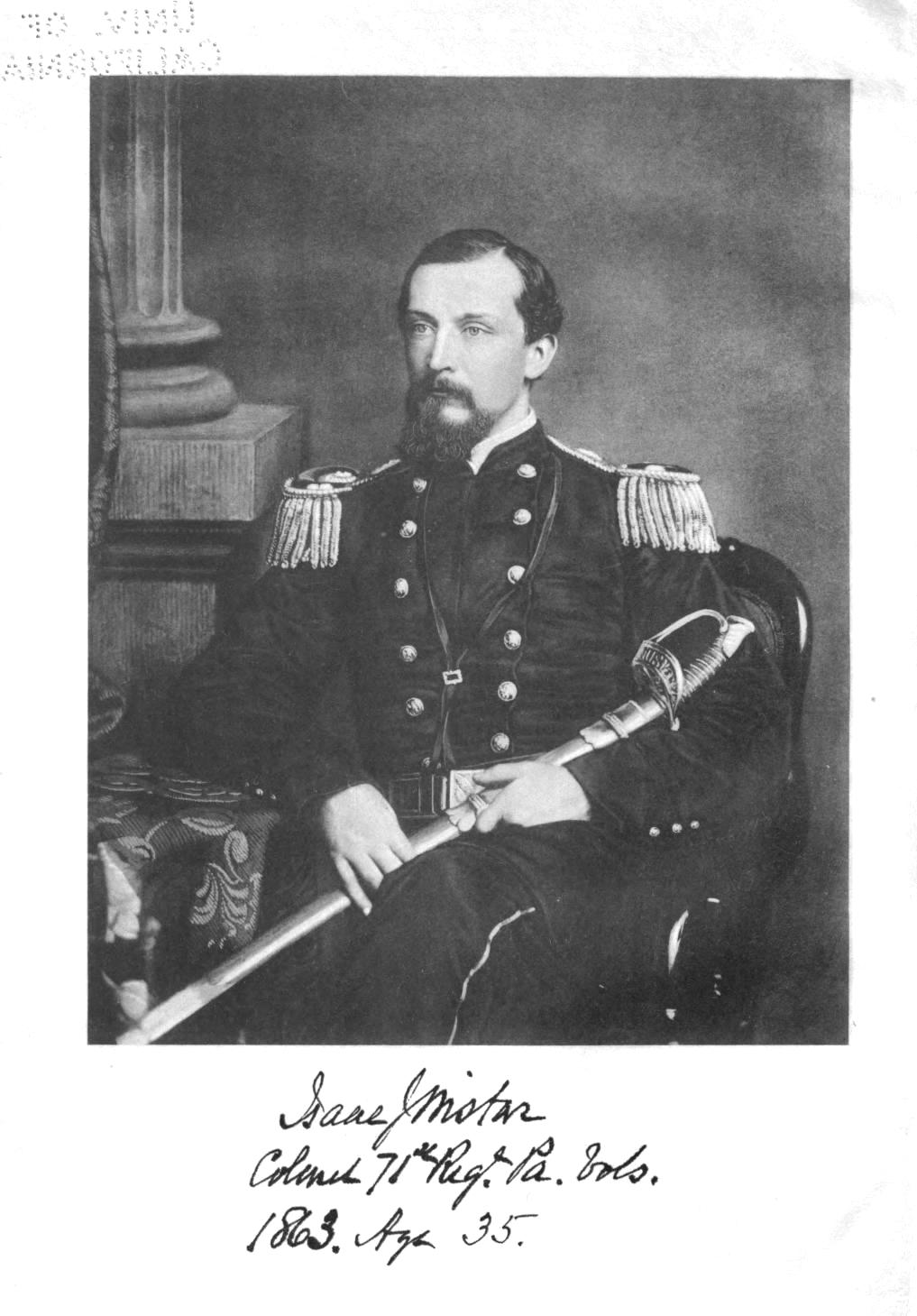 Colonel Isaac J Wistar commanded the California Regiment (designated the 71st Pennsylvania Infantry) at Antietam and was later commissioned Brigadier General of Volunteers.