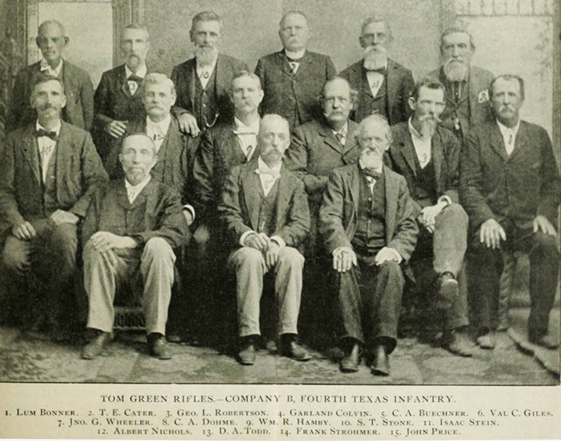 Here he is again, with other survivors of his Company in November 1897 at the Tom Green Rifles Reunion in Nashville, TN, in a photograph contributed to his Find-a-grave memorial by Sharon Rish King and is from the Confederate Veteran magazine (Volume 5, November 1897).