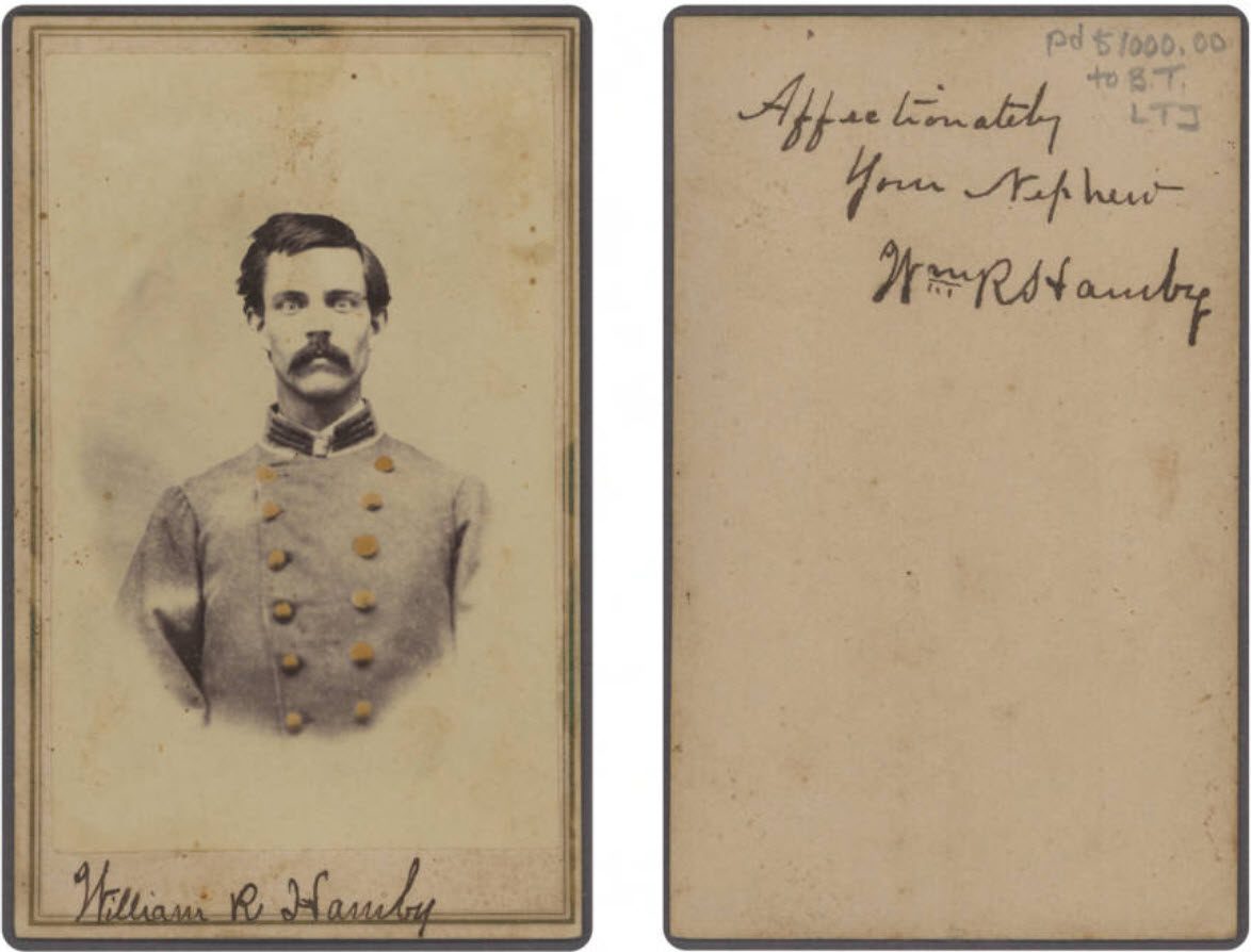 This carte de visite (CDV) is in the Lawrence T. Jones III Texas photography collection at Southern Methodist University, Dallas. There are a couple of interesting things about it, though. He’s in a Captain’s uniform – a rank he did not reach with the 4th Texas. And he looks somewhat older than 17 or 18 years – the maximum age he would have been in uniform.