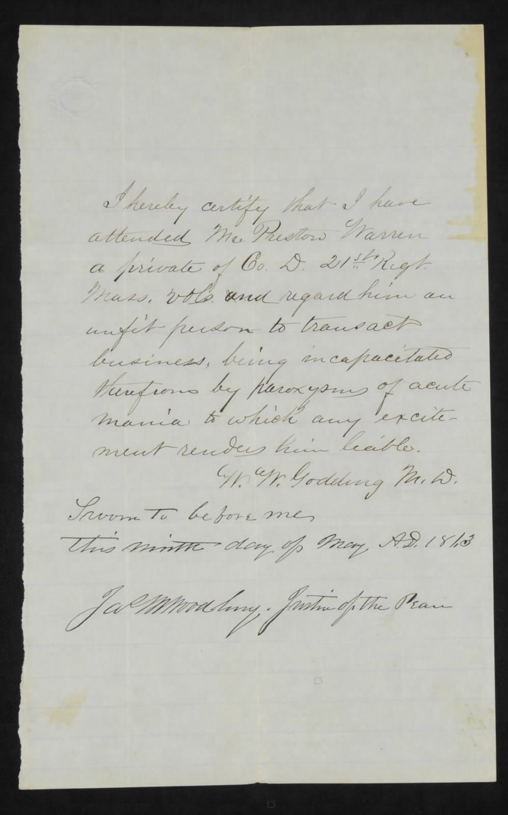 Regimental historian Captain Charles F. Walcott called her “the Florence Nightingale of the 21st” and wrote of her