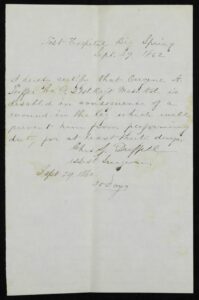 Daughter of the 21st Massachusetts Infantry’s Surgeon Calvin Cutter, Miss Carrie Eliza badgered her father into letting her accompany the regiment as a nurse (hospital matron on the rolls) on the North Carolina expedition of 1861-62. She tended sick and wounded soldiers up to her own death, of “spotted fever” aboard the transport Northener off New Bern on 24 March 1862.