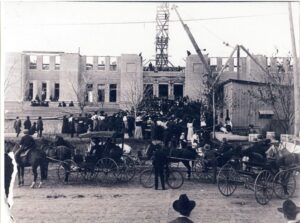 The photograph of the courthouse under construction is part of an online exhibit about the courthouse from the Texas Historical Commission’s Texas Heritage Trails Program.