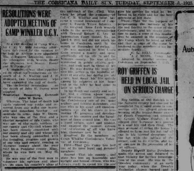 The news clip is from the Corsicana Daily Sun of 8 September 1925 online from Newspapers.com.