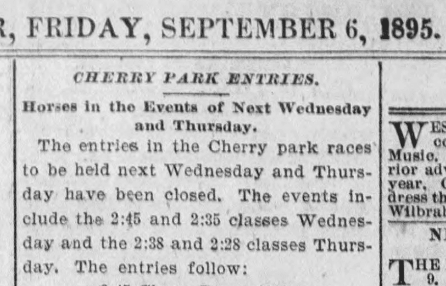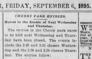 The fairgrounds at Cherry Park in Avon, CT hosted a regional fair every September from 1883 to 1911, complete with horse racing on a dirt oval about 1/2 mile long. There was auto racing there in the 1930’s and 40s and a suburban housing development took over in about 1960.