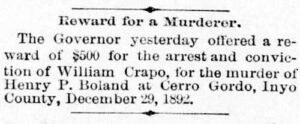 Reward for a Murderer. Billy Crapo at Cerra Gordo (1893)