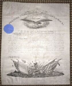Disabled for the field but still eager to serve, he was a Lieutenant in the Veteran Reserve Corps (VRC) from 1863 to 1867. Here’s his impressive commission in the VRC signed by President Lincoln and Secretary of War Stanton. It was offered for sale by the Abraham Lincoln Book Shop in Chicago.