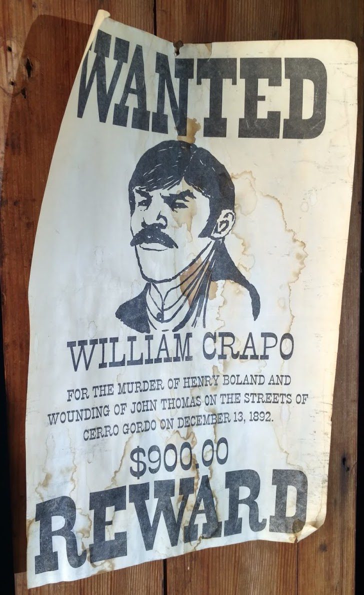 And here’s a reproduction wanted poster seen recently in the American Hotel in Cerro Gordo, California.