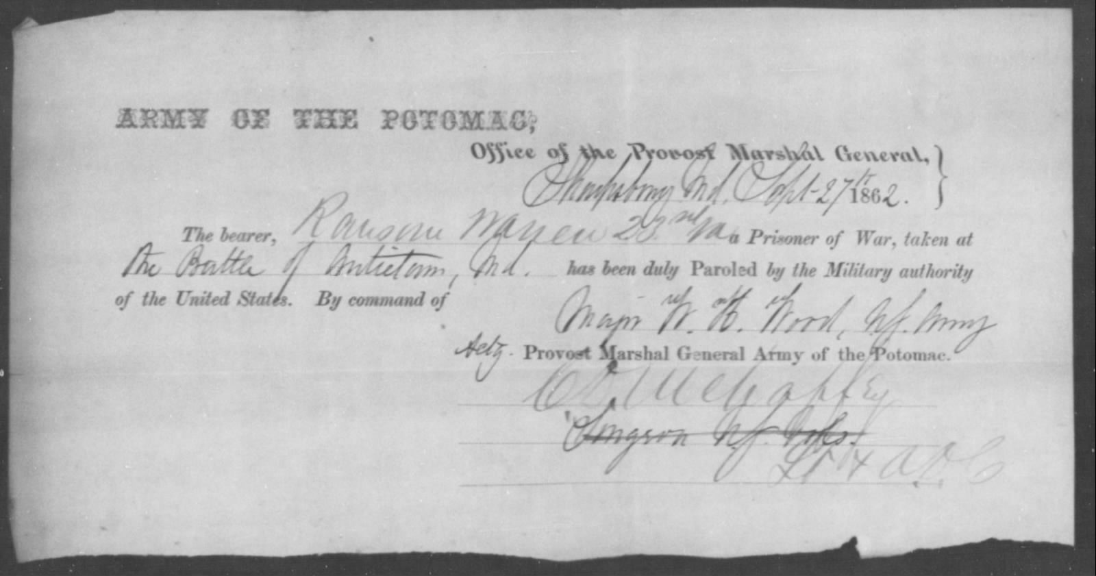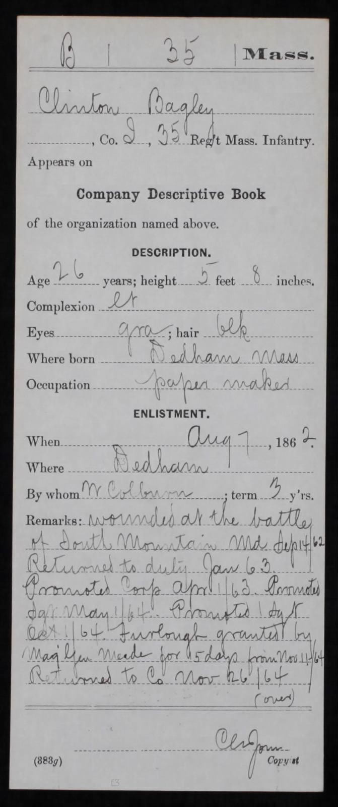 Then-Corporal Deishler was wounded in action near Turner’s Gap on South Mountain on 14 September 1862 but survived the war and farmed for many years afterward in Texas.