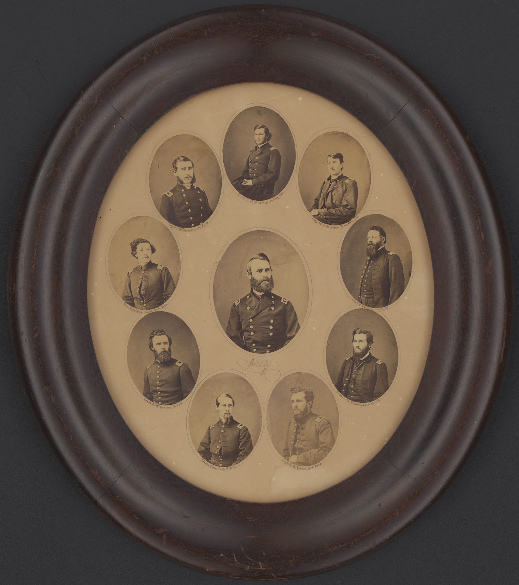 This set of photographs date from 1862-63 and, in addition to General Cox (center), includes 9 of his staff officers. Cox had command of the Kanawha Division/Ninth Army Corps at the start of the Maryland Campaign of 1862 and many of these men accompanied him there.