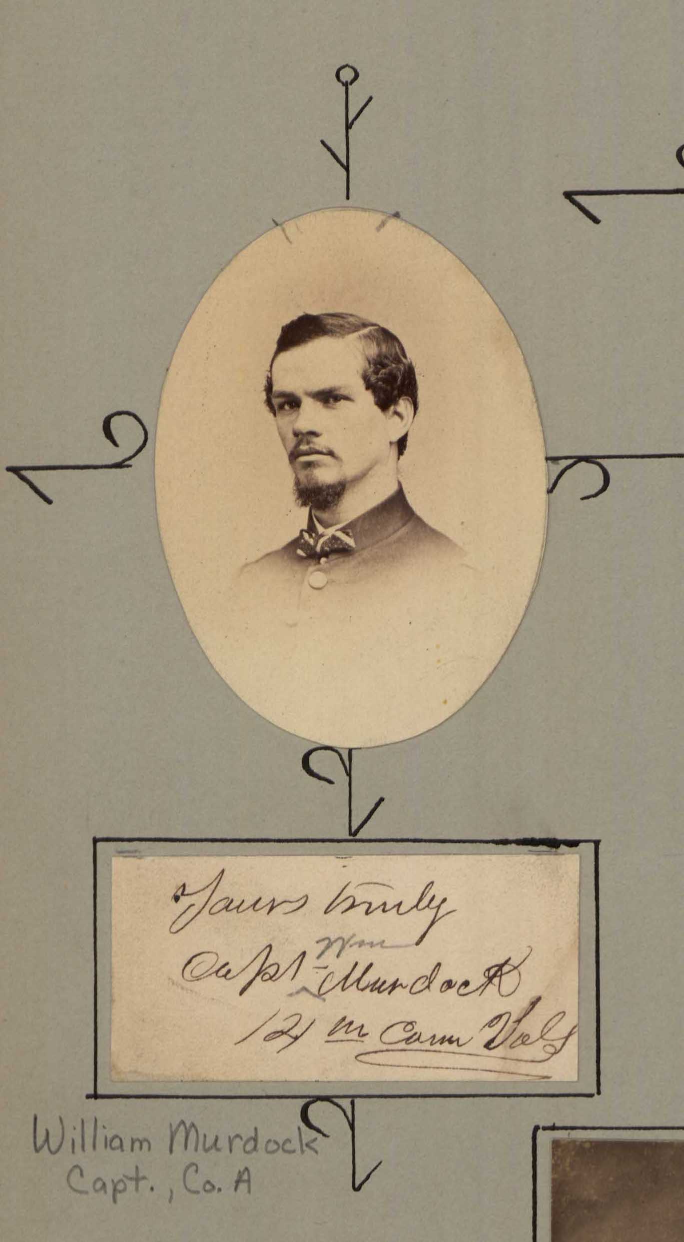 Born in Scotland, William Murdock came to America in 1855 and enlisted as a Private in Company B of the 14th Connecticut Infantry in 1862. He was slightly wounded at Antietam on 17 September 1862. He should have a mark over his left eye from that wound, but I can’t see it … a flipped image maybe?