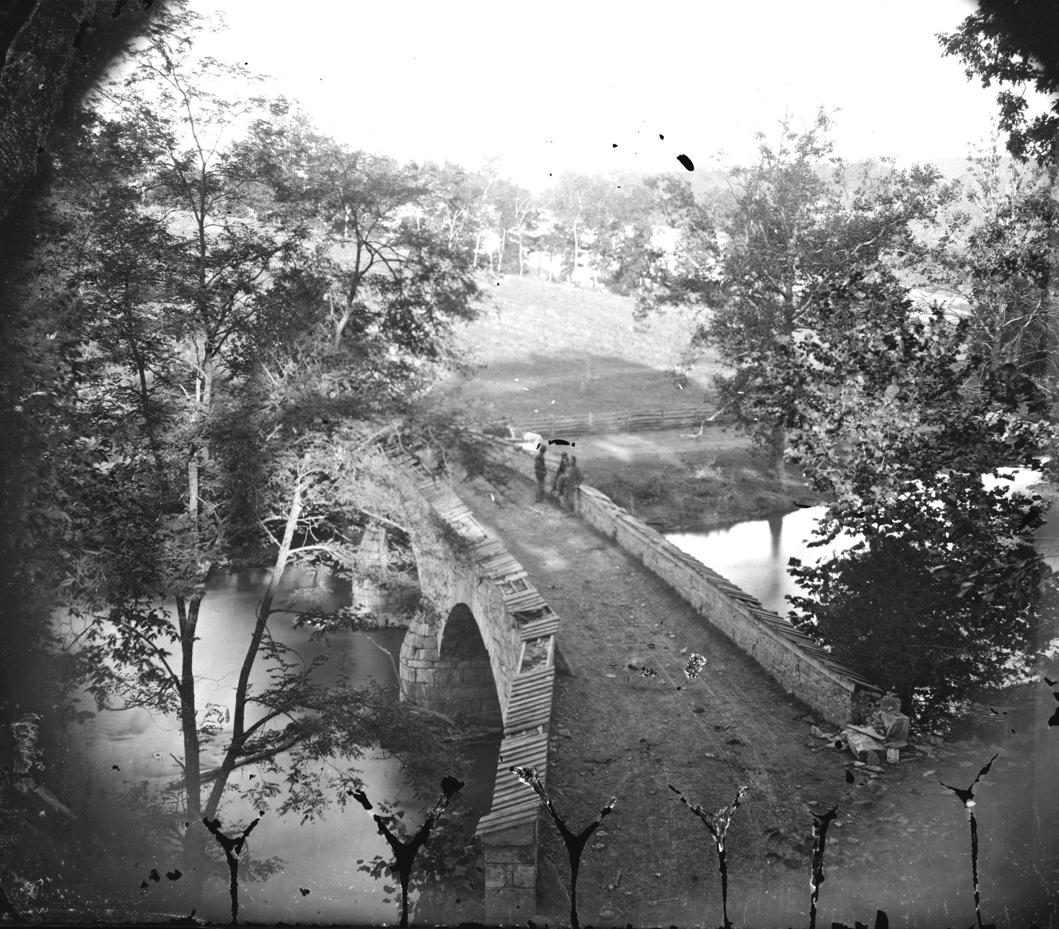 The photograph here is in the collection of the Library of Congress and is titled Antietam, Maryland. Burnside bridge. [Photographed from a tree?]