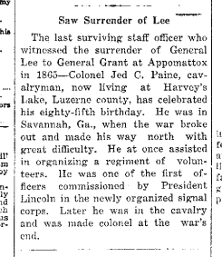 The orderly’s wound was in fact mortal, though the General couldn’t have known that for sure as he was writing. Private Domeyer died at the Locust Spring field hospital on 23 September, the day after the report was submitted.