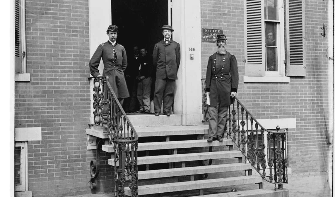 William Hoffman (1807-1884, USMA 1828), Colonel of the 3rd US Infantry, was Commissary General of Prisoners with charge of all US prisons, prison camps, and prison hospitals. His headquarters were in Washington, DC.