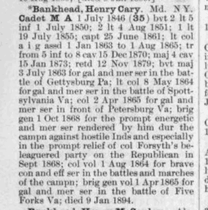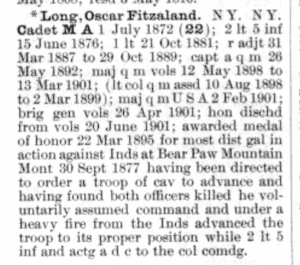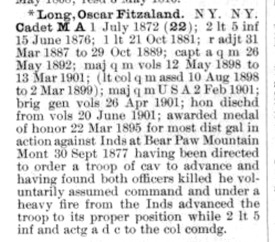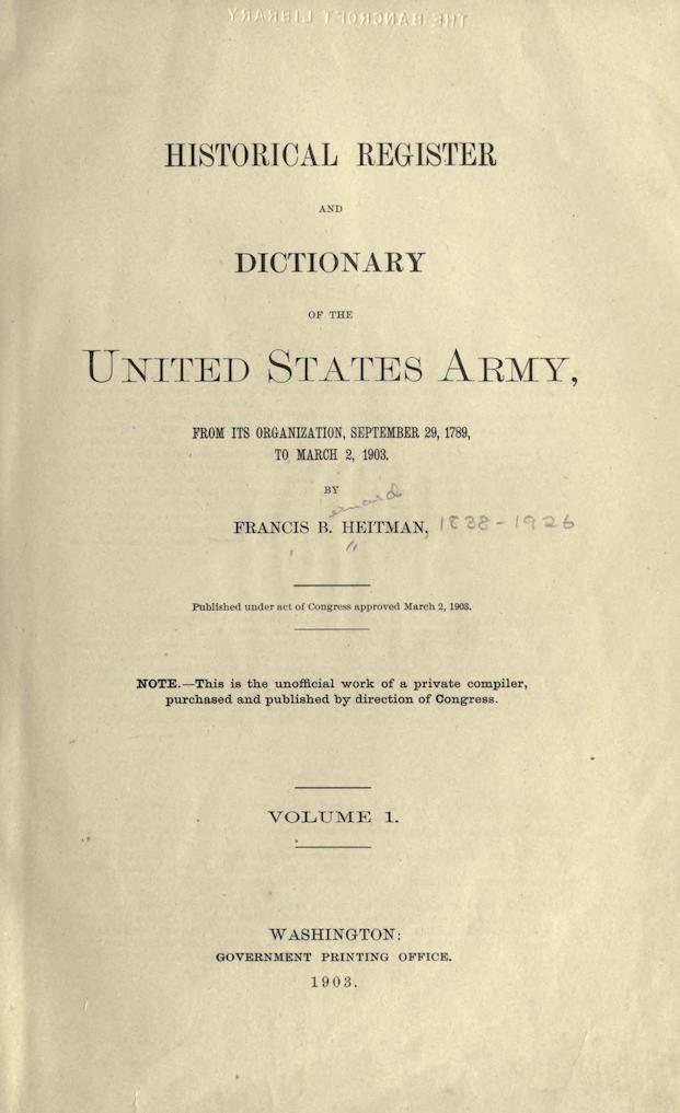 The title page of Heitman’s Register and the two snippets above are from a lovely copy of Volume I of the 1903 edition from the Bancroft Library, University of California, Berkeley, digitized by Google, and online from the Internet Archive. This particular copy was delivered to Colonel Oscar F. Long of the Quartermaster General’s office on 3 December 1903. Don’t you imagine he checked?