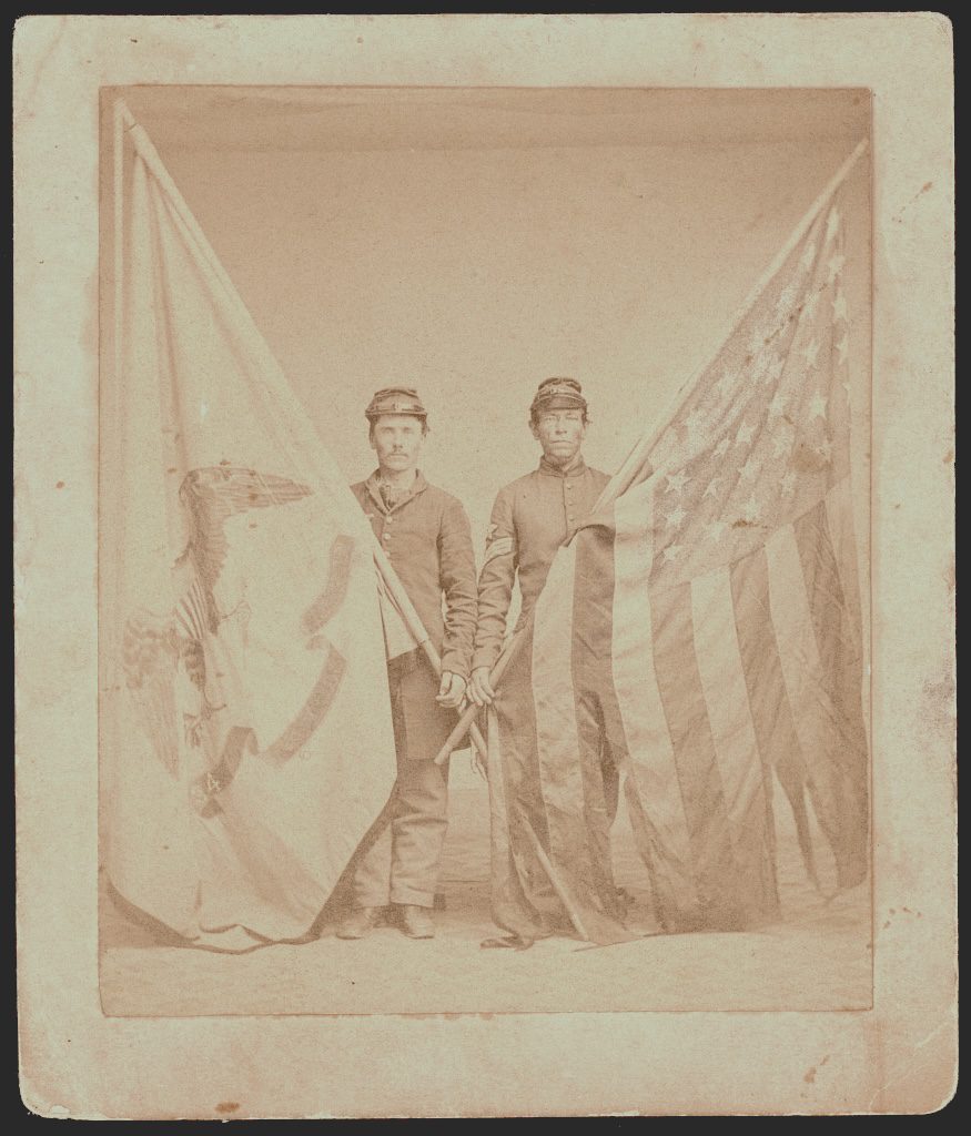 Judging by the ragged condition of the national flag, at least, that photograph was probably taken following the Peninsula Campaign of Spring/Summer 1862. It is now in the Liljenquist Family Collection of Civil War Photographs at the Library of Congress.