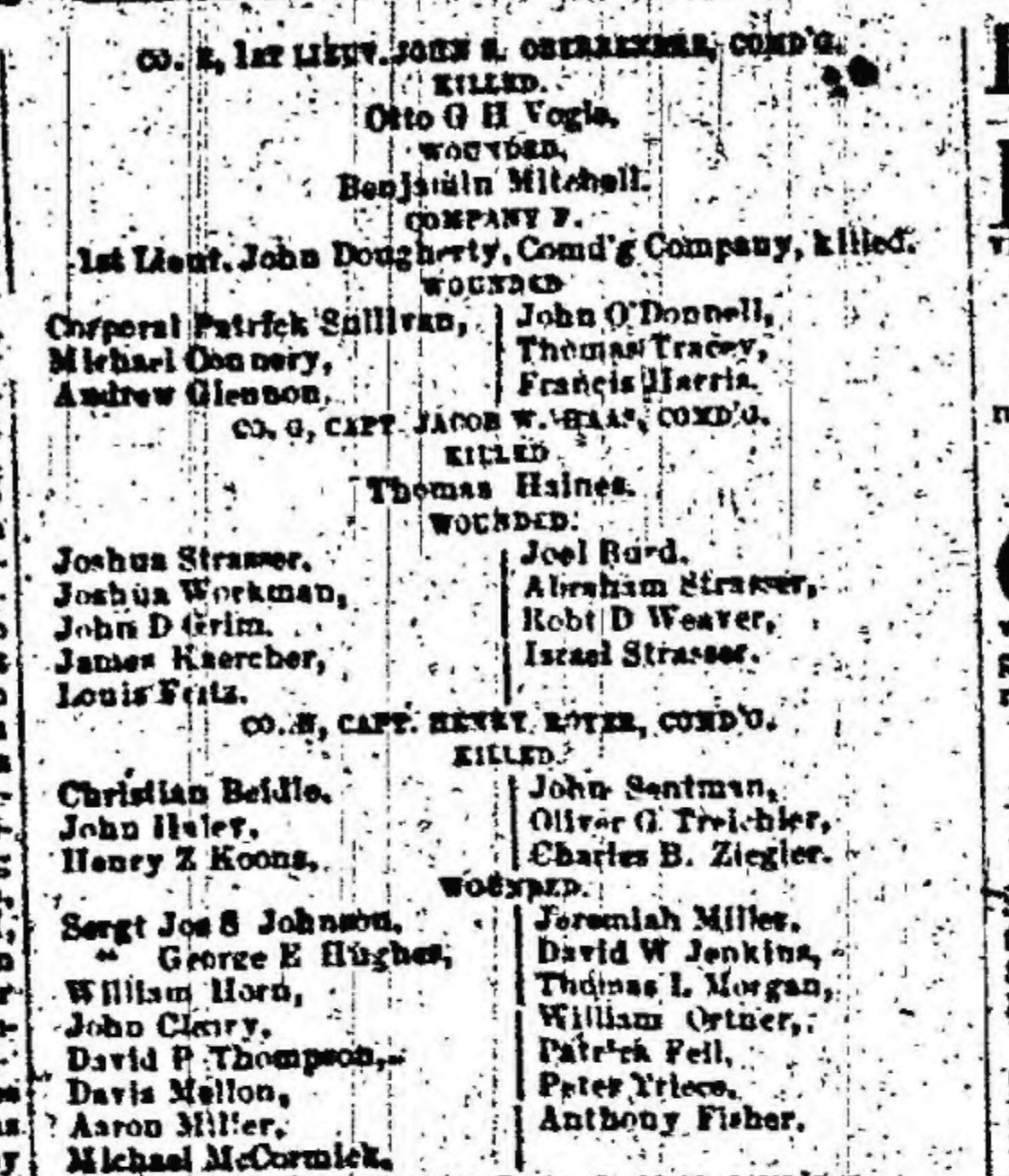 COMPANY F, 1st Lieut. John Dougherty, Comd’g Company, killed