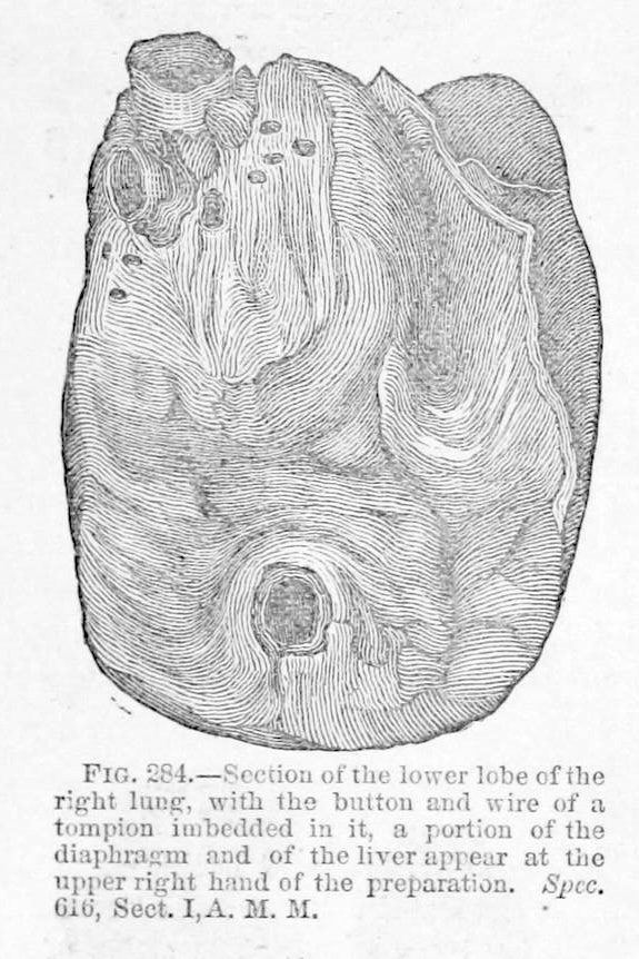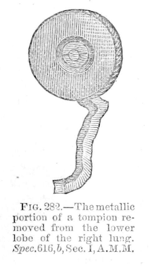 The soldier’s culpable negligence in failing to remove the tompion before firing, resulted sometimes in the bursting of the piece; sometimes in the projection of the tompion with sufficient force to penetrate, within short range, a man’s body; almost always, unfortunately, in more injury to others then to himself. The following is one of those cases …
