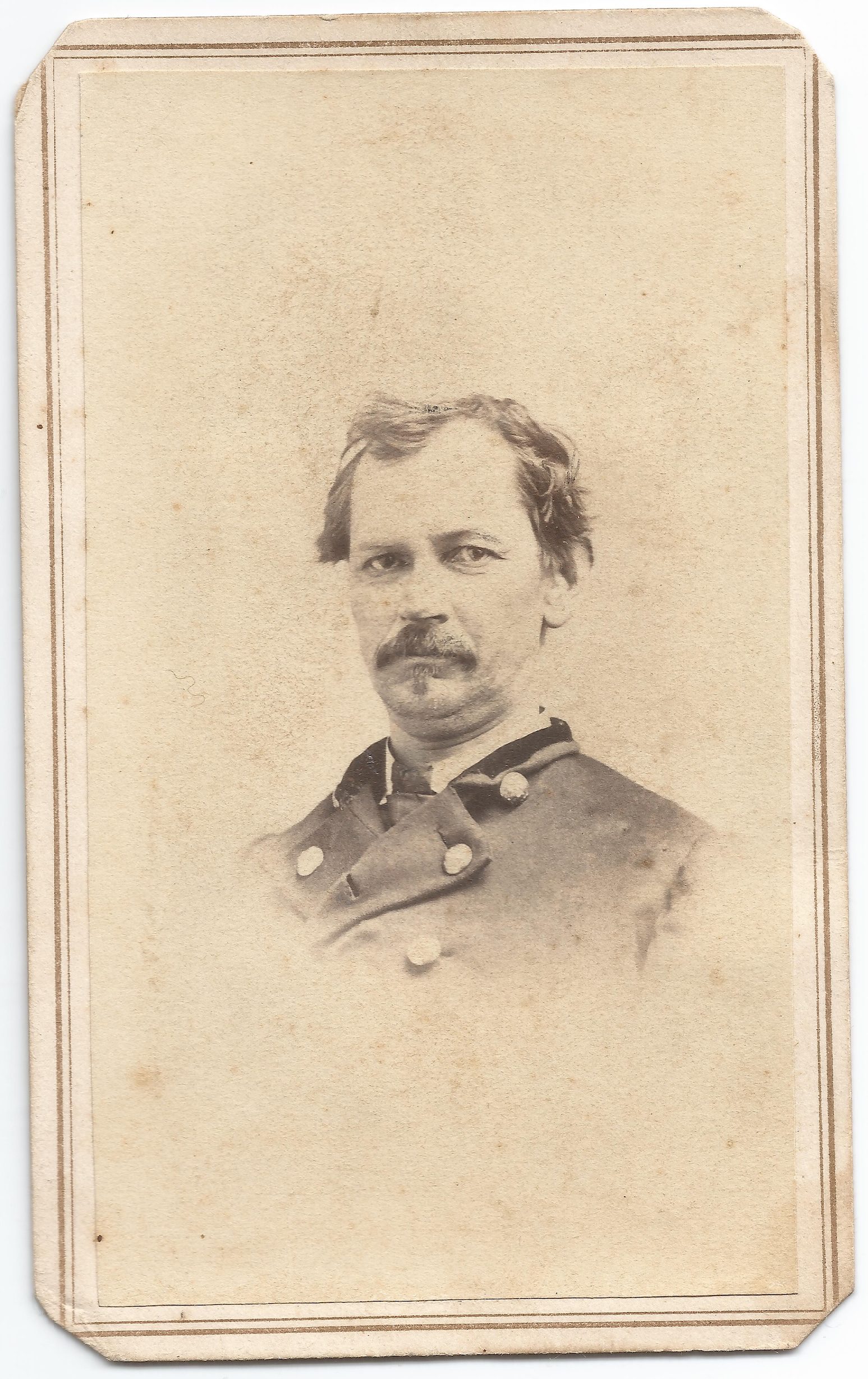 This serious face belongs to William H Blair, a lawyer from Bellefonte, Pennsylvania. He was Captain of Company G, 51st Pennsylvania Infantry and led them with “great gallantry in storming and taking Antietam Bridge 17 September 1862 under Maj. Gen. Burnside.”