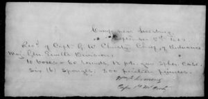 Looking into Captain William F Dement, commander of the First Maryland Artillery on the campaign of September 1862, I came upon this scrap of paper – a receipt for ammunition issued to his battery at Leesburg, VA on 5 September 1862. He and his battery crossed the Potomac River into Maryland at White’s Ford that same day.